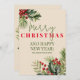 Holly and Pine Red Berries Beige Christmas Card with a beautiful spray of holly, red berries and pine on the party invitation for a festive Holiday party.