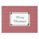 Festive cloth table cloth done in red with a white polka dot pattern. A white rectangle, in the middle of the table cloth, is edged in red and green and graphics of green holly, in each corner. Green text reads Merry Christmas and is fully customisable to read what you want. Great for your holiday parties, matching paper napkins and paper plates available.