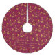 Golden holly leaves and red berries on dark red patterned Christmas personalised name and message tree skirt. Original graphic art and pattern design by www.mylittleeden.com