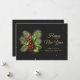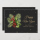 Black botanical business New Year card featuring a winter greenery of pine tree branches and holly berries. Easily personalise this elegant corporate New Year card with your company name.