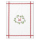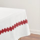 This simple white holiday tablecloth features red trim around the four sides and a holly and berries wreath with a monogram initial in the centre that you can customise easily before ordering.