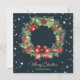 Elegant photo Merry Christmas card featuring a watercolor wreath of berries, holly, pine cones and conifer tree branches. A photo at the back. Easily personalise this photo holiday card with your photo and family name.