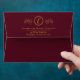 A luxurious blend of dark cranberry red and gold tone sets a tone of timeless elegance.  Your return address is accented by an emblem created with holly motifs and your monogram initial in centre, enclosed in a double circle in a gold tone.  The inside features a rich dark plaid pattern in dark cranberry red, dark navy blue and dark teal green with faux gold threads.  Perfect for your holiday mailings from personal to corporate.