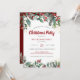 Make a stunning statement this holiday season with this stylish holiday Christmas party invitation! Your party details are framed by borders of botanical graphics in watercolor festive palette with inky lines and golden outlined leaves, red berries, green mistletoe, pine needles, pine bough and other winter foliage.