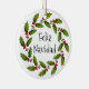 Holly Berries Wreath Design Ornament with customisable text and background colour.