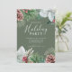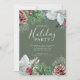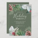 This elegant Christmas holiday party invitation features a beautiful evergreen pine branches, holly berries and pinecone arrangement set on a green background. The invitation is perfect for inviting your friends and family to a festive holiday gathering. The overall design is festive and sophisticated, and the invitation is sure to impress your guests.