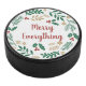 Holly Berry Pine Wreath Merry Everything Holiday Hockey Puck