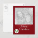 Bright Red card with White button adorned with holly and festive Merry Christmas Greeting!