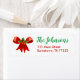 Personalised Christmas return address labels with a pretty red Christmas bow with holly.