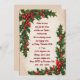 Beautiful dark green holly leaves festooned with berries frame the corners of this beautiful and festive holiday party invitation. The background resembles aged parchment, and the centre has plenty of space for your text.