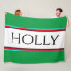 HOLLY Fun Festive Bright Green Red White Stripes Fleece Blanket