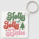 Holly Jolly Babe Retro Groovy Christmas Holidays Key Ring