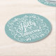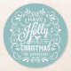 Holly Jolly Christmas Chalk Art Holiday Party Blue Round Paper Coaster
