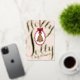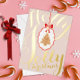 Hand drawn typographic Holly Jolly Christmas foil card featuring a gingerbread christmas tree ornament and customizable greetings on pastel pink background