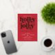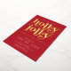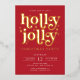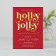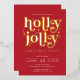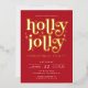 This Christmas party invitation titled "Holly Jolly" showcases the festive spirit with its large lettering in gold foil and vibrant red background. The invitation sets the perfect tone for a joyful celebration, inviting guests to join in the merriment of the holiday season.