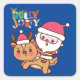 Holly Jolly Christmas Santa Riding Reindeer Square Sticker