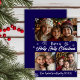 Spread fun and cheer this holiday season with this classic blue and white personalised Christmas card, featuring three of your cherished family photos on the front along with the festive holiday greeting "Have a Holly Jolly Christmas" with your family name and year at the bottom. On the back, edit the message to share a heartfelt Christmas greeting, perfectly tailored to express your unique holiday wishes. Add your first names below the message to add a personal touch, creating a keepsake that friends and family will treasure.