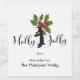 This design features a penguin holding a branch of holly among the words: Holly Jolly. The original humourous animal illustration makes cute funny and unique Christmas wine labels.