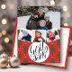 Holly Jolly Fun Script Christmas Pine Tree Festive Holiday Postcard. Send holiday warm wishes and greetings to your loved ones with this festive, cute and fun Holiday Card featuring a four of your favourite family photos in a simple collage layout with the "Holly Jolly" appears in fun & cute hand-lettered script typography. Wish you all a Merry Christmas and a Happy New Year!