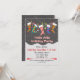 So cute! Colourful Christmas Stocking hang from a clothesline in different fun patterns. Invitation features a snow covered hill with your party info and snowflakes falling with a chalkboard background. Great for any Christmas or Holiday party!