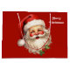 Gift bag with a joyful illustration of a vintage style Santa Claus with red rosy cheeks. wearing his classic red Santa hat and his big white bear. A sprig of holly adds to the festive holiday spirit of this design.