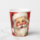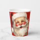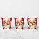 Paper cups with a joyful illustration of a vintage style Santa Claus with red rosy cheeks. wearing his classic red Santa hat and his big white bear. A sprig of holly adds to the festive holiday spirit of this design.