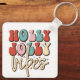 Holly Jolly Vibes Retro Groovy Christmas Holidays Key Ring