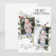 Holly Merry Christmas 2 Photo Collage Pineneedle Holiday Card. Elegant modern Christmas card featuring real hand painted watercolor winter greenery and berries with 2 photo collage in golden frames. Replace the photos with your own and adjust the card however you like.