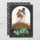 Holly Branch Modern Arch Navy Stripes Custom Photo Holiday Card You can Change the Word Peace to Joy, Hope, Love or Anything You Want, Comes with a Classy Silver Navy Stripes Back