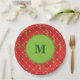 Holly Monogram Red and Green Paper Plates
