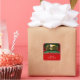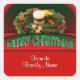"Merry Christmas" traditional festive season stickers, featuring a beautiful "Christmas wreath" with holly, cinnamon sticks, dried orange slices, pine cones, gold stars representing the birth of "Jesus of Nazareth", and lush green leaves entwined around a white candle. The words "Merry Christmas" appear in green and the design is set against a red background with customisable text templates for you to insert your family name and/or personalised festive greeting. IDEAL FOR: Corporate, business and personal Christmas or Xmas functions, events, parties, gatherings, banquets and "Christmas in July" traditional feasts.