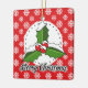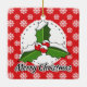 Holly on Red White Snowflakes Pattern - Merry Xmas Ceramic Ornament