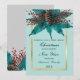 This elegant and artsy Christmas holiday greeting card is a great way to send the holiday spirit to your friends and family. It features a hand-painted teal green leaves, burgundy red holly berries, and brown pine cone bouquet arrangement on top of a faux printed gold foil border and mint green background and a slate grey background on the back for contrast and a unique touch. It's a festive, pretty, and modern design for your seasonal event!