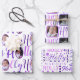HOLLY Script Purple On White 4 Photo Christmas Wrapping Paper Sheet
