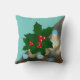 Christmas holiday throw pillow with holly tree berries on a blue and bokeh background. Great holiday Christmas pillow for a Christmas festive feeling or a gift for family and friends.