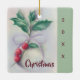 This commemorative custom dated Christmas ornament is embellished with lovely pastel artwork depicting a sprig of evergreen holly with bright red berries enhanced by a pale lavender bow.