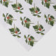 Festive holly leaves and bright red berries on a ivory linen textured background, perfect for holiday gifts, Christmas decorations, and seasonal home accents.