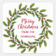 Holly Wreath Design Sticker Label with customisable text and background colour.