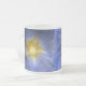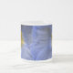 This stunning frosted glass mug features a close up of a photograph of a beautiful hollyhock flower that has been artificially coloured resulting in a beautiful dark blue colour. The centre of the flower is a golden yellow colour. The original photo was taken using macro photography resulting in a stunningly detailed image. There is one flower on each side of the mug and the two overlap in the middle. This design is also available on coffee mugs.