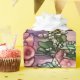 Gorgeous vintage Art Nouveau Tiffany Stained Glass Floral Window Reproduction depicted the beauty of a field of hollyhocks in romantic purple tone against sunset sky is on this gift wrapping paper.