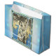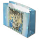 Large glossy gift bag with a vintage 1940s image, on the front and back, of an actress with Earl Carroll's Hollywood on ombre blue and green with light blue polka dots. See the entire Patriotic 40s Gift Bag collection in the PARTY FAVORS section.