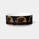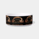 This is a heavy, durable bowl decorated with Tibbies of many colors, the perfect size for hungry/thirsty Tibs. The design is interesting and printing clear.