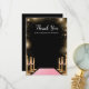 End your celebration on a high note with this dazzling thank you card, designed to match the elegance of your unforgettable event. Featuring a glamourous black and gold design with sparkling lights, pink carpet ropes, and bold Hollywood-inspired typography, this card is the perfect way to express gratitude in true VIP style.