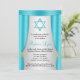 Elegant Hollywood themed Bat Mitzvah invitations. Featuring teal blue curtains and a aqua Star of David. Perfect for your Hollywood themed Bat Mitzvah party!