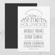 A unique wedding invitation for a marriage taking place in the star-studded city of Hollywood, California. This invitation features a stylised illustration of the city's unique skyline with its name underneath. This is followed by your wedding day information in a matching open lined style. On the reverse side of the invitation is a deep grey colour to complement the look and feel. All individual elements of the invite card are unlocked so feel free to change or add any details necessary by using the customisation function. You can add a photo to the reverse side and add a black and white filter to it. Matching RSVP cards, belly bands, tote bags, and more are available.