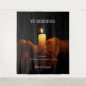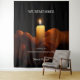 The soft glow of the candle and the restrained typography encourage contemplation while remaining appropriate for all ages and public settings.