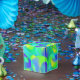 Translucent-edged organic blobby shapes - in primarily super-bright green with yellow and indigo contrast tones. (Design may be resized or rotated, plus you may add in your own text, too.)