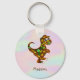 Cute colorful floral baby dinosaur over abstract blur hologram. Optional monogram
