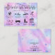 Modern aftercare card eyelash extensions icons and holograph background - use this aftercare instructions with illustrated instructions for your clients. On the back side you can add your logo / optional and your contact info, as well as your social media accounts.