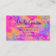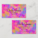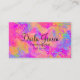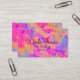 A bright modern elegant script business card featuring complimentary shades of pink, purple, and orange. The text is easy to personalise with your own information.